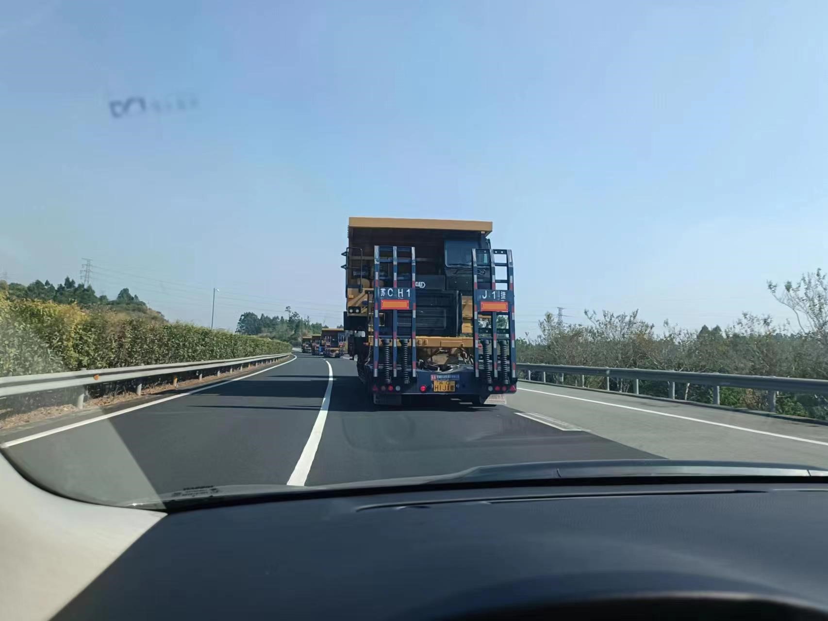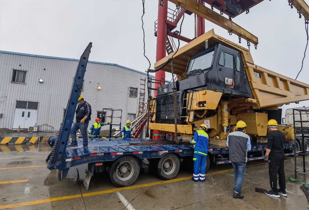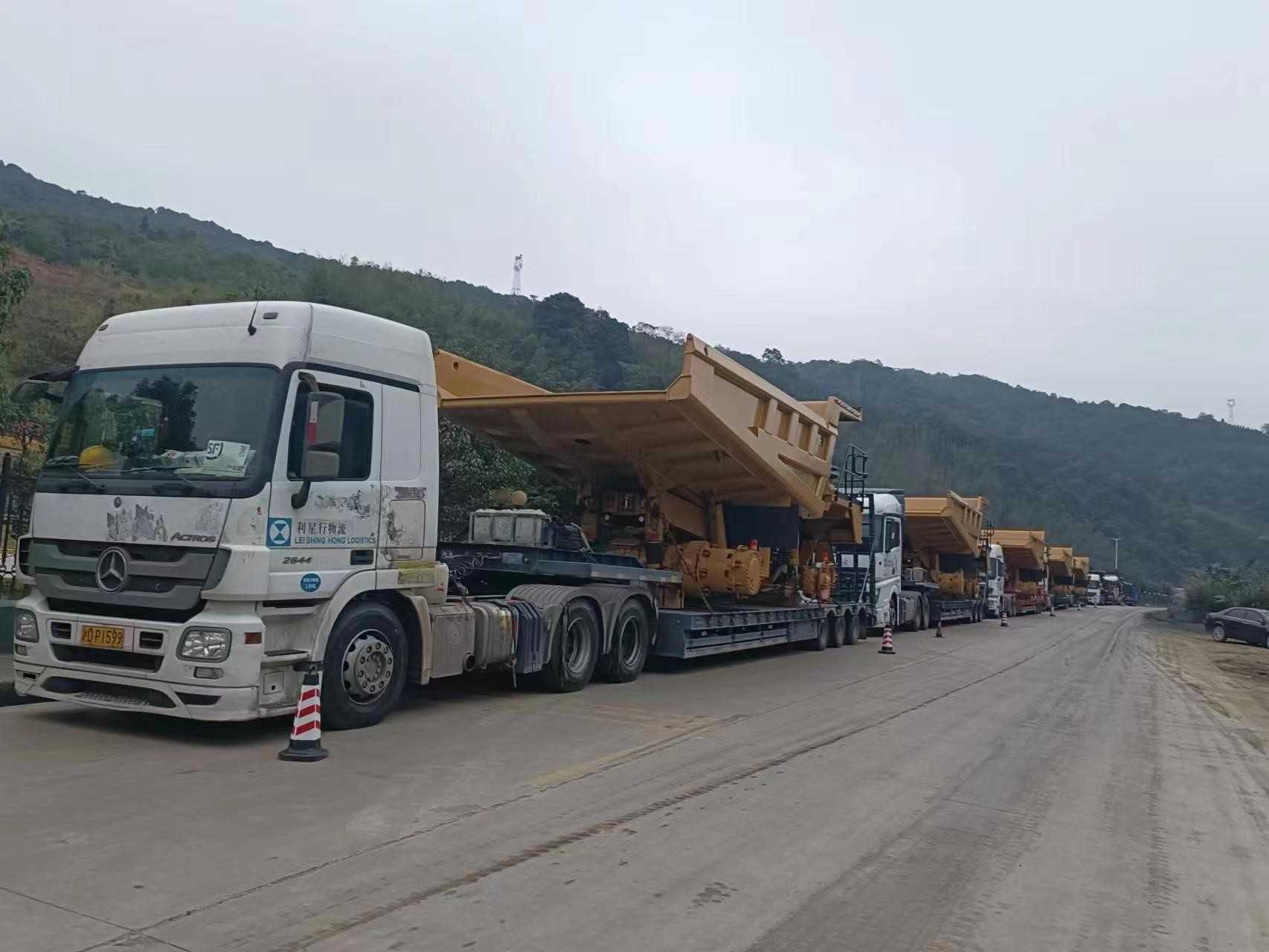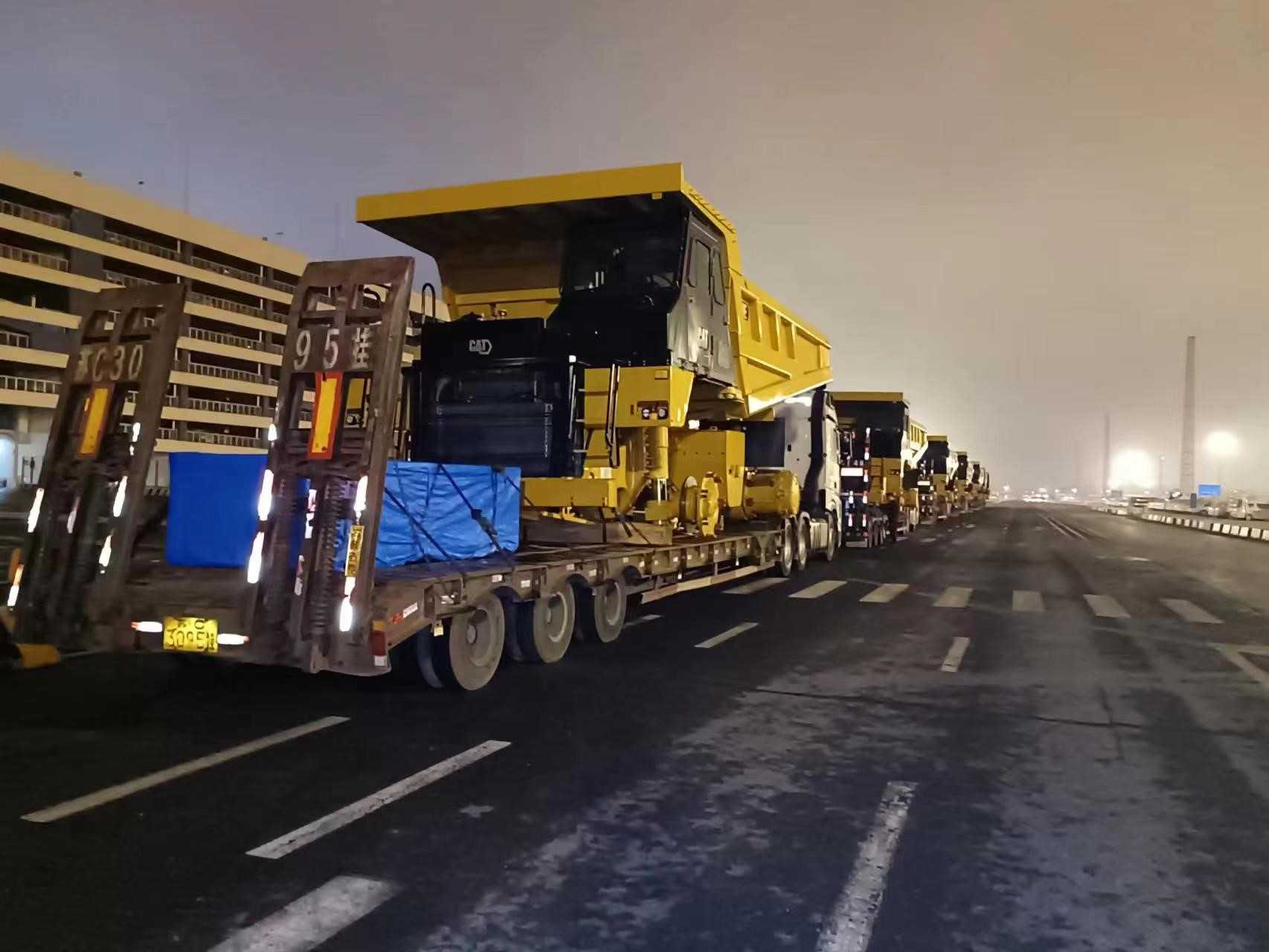一批次發(fā)運(yùn)7臺(tái)773E礦卡,超限設(shè)備運(yùn)輸,押運(yùn)車全程保障;目的地區(qū)域山路多,道路崎嶇,地形復(fù)雜;排除萬難,保證設(shè)備安全到達(dá)并如期交付。